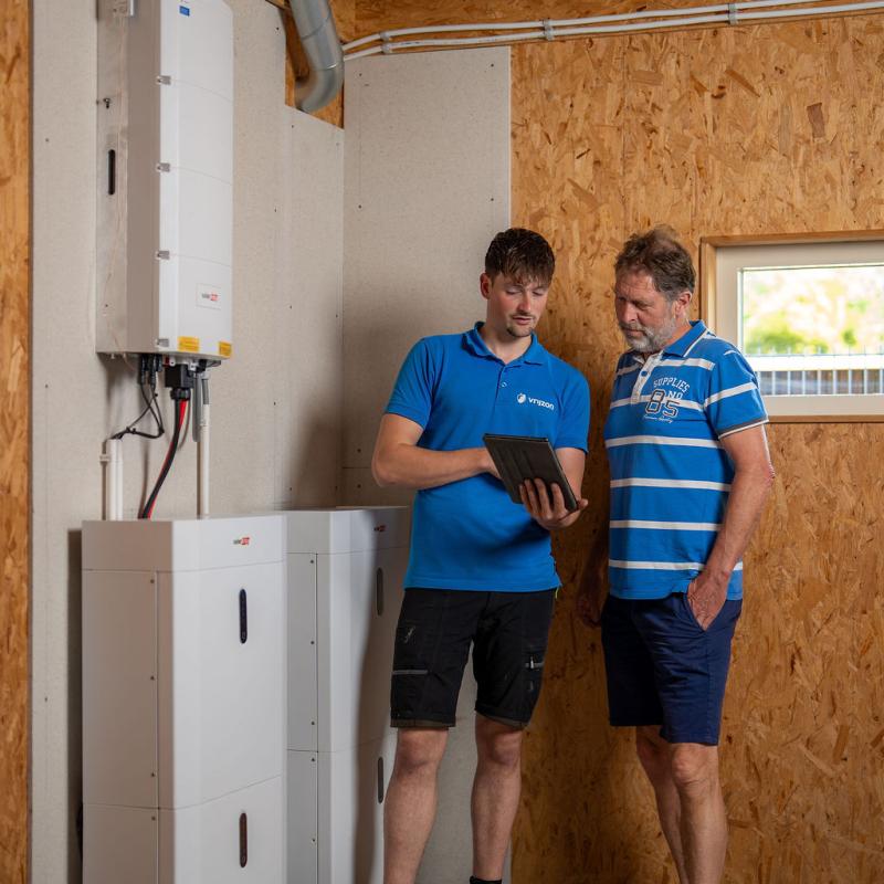 De prijs hangt af van het aantal batterijmodules, de situatie ter plaatse en de eventuele back-upvoorziening. Vrijzon levert heldere totaalpakketten inclusief alles. Prijsindicatie (1 module van 4,85kWh incl. installatie): Vanaf 5.950 compleet geïnstalleerd. Voor grotere systemen of back-uptoepassing maken wij graag een offerte op maat.